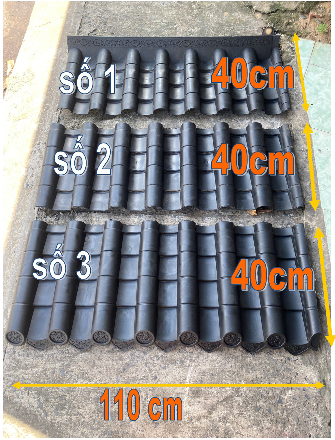 – Ngói nhựa âm dương loại nối 40cm và 60cm cho các khổ nối trên, nối giữa và nối dưới