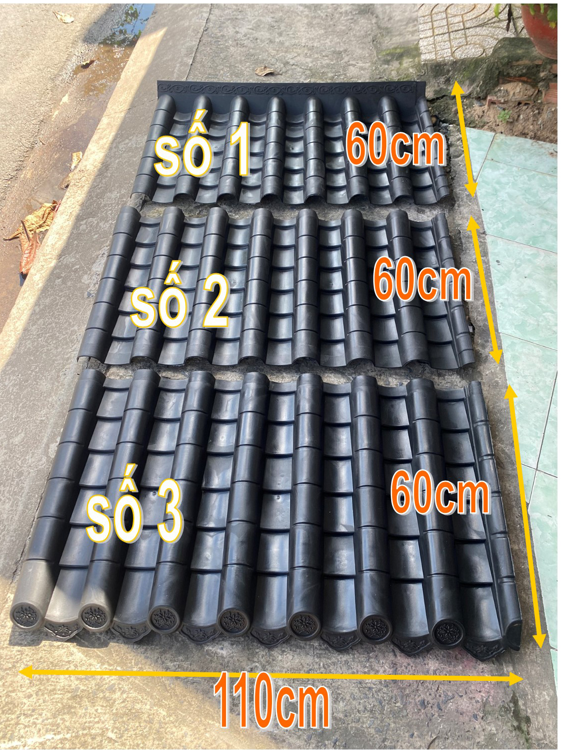– Tâm Ngói được làm đúc giả cổ các lam sóng cách điệu rộng 7cm